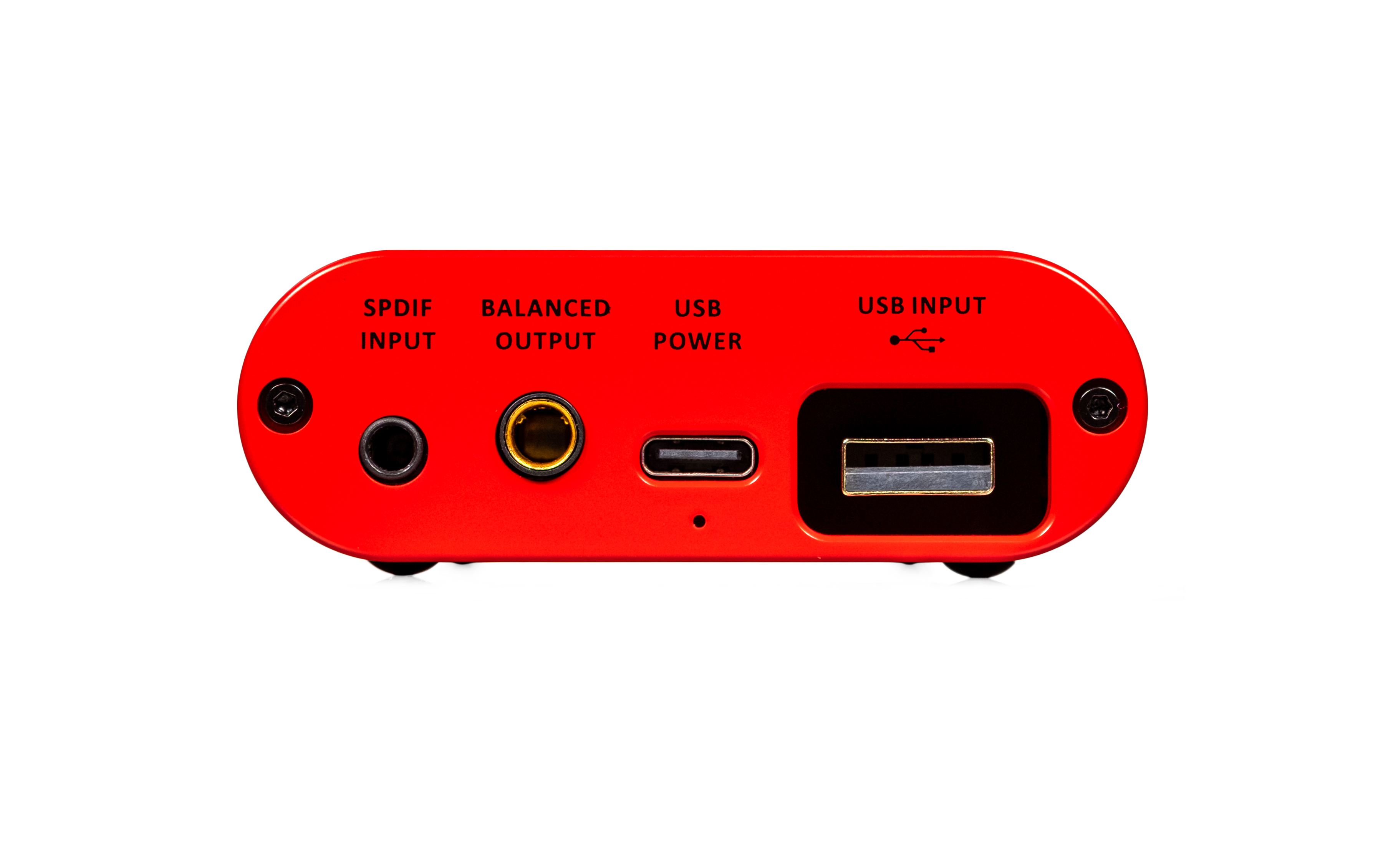 At the back of the chassis are two digital audio inputs: USB-A and an S/PDIF socket that accepts both electrical and optical signals, the former via a 3.5mm connector and the latter via a supplied adapter. Unusually, the USB-A input features a ‘male’ connector, rather than a typical ‘female’ port – this arrangement provides greater mechanical integrity than the USB/Micro USB ports commonly used by other DAC/headphone amps. It also offers an advantage to users of iPhones and iPads with Lightning ports, because it accepts Apple’s Lightning to USB Camera Adapter directly without requiring an additional female-to-male USB adaptor. A separate USB-C charging port is also provided, along with a fixed line-level 4.4mm Pentaconn balanced output to connect an external amp.