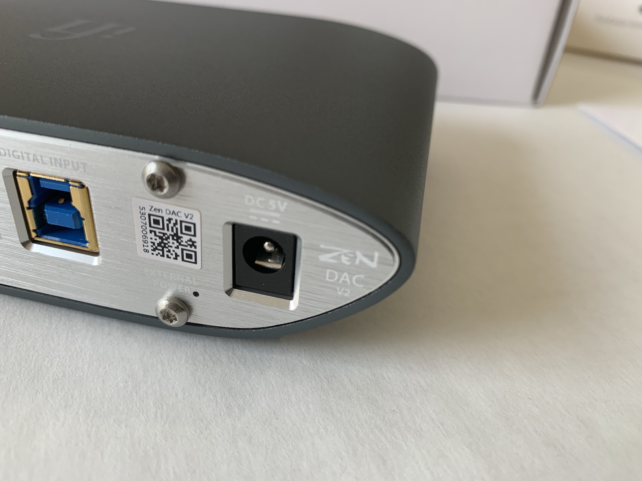 At first glance, there isn’t much difference between the Zen DAC V1 and V2, but a closer look reveals a darker iFi logo on the top of the V2 and “Zen DAC V2” branding on the back.